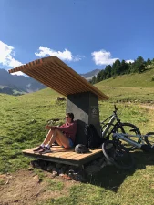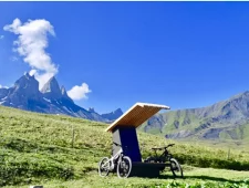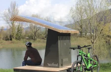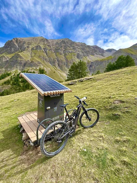 La station de recharge solaire Cabanavélo permet de recharger 3 vélos à assistance électrique (VAE) simultanément. Cabane cosy, elle fait le plein d’énergie de votre vélo pendant que vous admirez le paysage, partout entre ciel et mer.